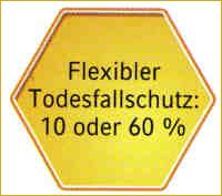 Der Versorger ist während der Versorgungsphase mit abgesichert: Stirbt er, wird das Vorsorgeziel durch die Beitragsfreiheit trotzdem erreicht und obendrein zahlen wir vor dem Alter 8 Jahre des versicherten Kindes eine Todesfall-Leistung. Entscheiden Sie selbst, ob Sie 10 % oder 60 % der Beitragssumme aus der Hauptversicherung als Todesfallschutz vereinbaren wollen.